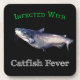 Ya sea que estés comiendo o pescando con un anzuelo y un pecador, pocas cosas se comparan con atrapar un pez globo potente y delicioso. Sí. Imagen detallada a todo color de un bagre con el texto Infectado con Peste de bagre.