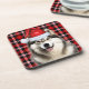 Un juego de montaña rusa para la persona que ama a su Malamute alascánico. Este restaurante lleva un sombrero de Santa para una acertada temporada navideña, y se sienta con gusto frente a un fondo festivo de mantas rojas, negras y blancas para decorar su casa u oficina con la alegría estacional de los amantes de las mascotas.
