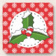 Berry Holly sobre el fondo de un patrón de copos de nieve blanco rojo.
