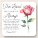 El Señor siempre te guiará; Él satisfará tus necesidades en una tierra de sol y fortalecerá tu marco. Serás como un jardín bien regado, como un manantial cuyas aguas nunca fallan. Isaías 58:11 Verso Inspirador de la Biblia con diseño de un solo Rosa. Un gran regalo para la graduación o las reuniones.