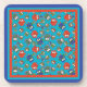 Un conjunto de divertidas esteras o esteras con soporte de corcho cuadrado, con un patrón de adorables lechuzas en rojo, azul, verde sobre un fondo azul turquesa. El patrón de búho proviene de un diseño original de collage de papel pintado a mano de Judy Adamson.