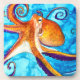 Vibrante naranja colorido y pulpo púrpura criatura marina. Pintura de acuarela de pulpo en colores vivos con un tema marino. Inspiración en el arte oceánico. Diseño de temática marina.