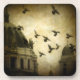 La melodía del ángel llena el aire, los pájaros vuelan a la música. Es una escena gótica surrealista hecha en colores vintage y envejecidos.