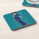 Una mujer elegante de estilo vintage inspirada en la era de la moda Art Deco de los años 20. Esta dama de moda lleva un vestido azul y el gorra rojo tiene un fondo de color verde azulado personalizable.