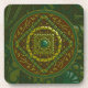 Esta mandala temática Taurus presenta una piedra esmeralda rodeada por el símbolo del signo, la constelación y el símbolo alquímico de la Tierra entre filigree y tejidos.