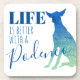"La vida es mejor con un Podenco" en tipografía azul. Cuenta con una encantadora silueta de un montículo ibicenco en tonos azules. Personalizable completo, puedes personalizar el mensaje con el nombre de tu perro si lo prefieres.