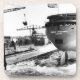 Lanzamiento del Edmund Fitzgerald 6-8-1958. SS Edmund Fitzgerald (apodado "Mighty Fitz", "The Fitz" o "The Big Fitz") era un carguero estadounidense de los Grandes Lagos lanzado el 8 de junio de 1958. Más de 15.000 personas asistieron al lanzamiento del Fitzgerald. El evento fue problemático. Cuando la Sra. Edmund Fitzgerald bautizó el barco destrozando una botella de champán sobre la proa, le tomó tres balancines romper la botella. El lanzamiento se retrasó 36 minutos mientras la tripulación del astillero luchaba por liberar los bloques de quilla. Al lanzarse a los lados del agua, el barco se estrelló violentamente en un muelle. Aunque había informado de tener algunas dificultades durante una espigón en el lago Superior, el Fitzgerald se hundió repentinamente el 10 de noviembre de 1975 en 150 metros de agua sin enviar ninguna señal de peligro. La causa precisa de su hundimiento sigue siendo un misterio. Los 29 a bordo se perdieron.