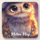Una lechuza encantadora de ojos amplios vestida con un clásico gorra de brujas se sienta sobre una rama. La expresión caprichosa de la lechuza y el brillo ligeramente inclinado del gorra le dan un toque divertido, de temática Halloween.
