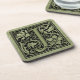 Letra decorativa encantadora J tipografía de estilo monograma inicial tipografía de primera letra en verde salvia sobre negro - revestimiento de libro verde aguacate con hojas de Ginkgo blanco biloba.