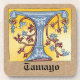 Posavasos Letra medieval azul y marfil rojo iluminada T