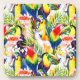 Diversa especie de los pájaros el | de loros y de hojas de palma. © y ® Bigstock® - todos los derechos reservados.