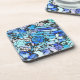 Música, flores y hojas componen este cuadro vibrante con un patrón floral que mezcla tonos azules y líneas negras. Diferentes tipos de flores, así como hojas, mariposa y notas musicales están apretadas para crear un diseño animado y decorativo.