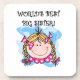 Cajas de sake, azulejos, adornos, cuadernos, almohadas de lanzamiento, tazas, sepads, bolsos de té, tarjetas y más, con un chica de pelo rubio con trenzas y un texto negro que dice "Mejor Gran Hermana del Mundo".