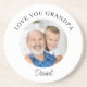 This modern Grandpa keepsake photo coaster says "Love you Grandpa" and is easily customizable with your name and photo.