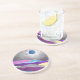 Un hermoso diseño paisajístico abstracto con una luna azul y coloridas colinas onduladas en tonos violeta, azul, cian y amarillo.
