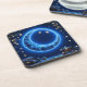 Escena nocturna caprichosa que presenta una luna creciente brillante iluminada con luz de neón azul. Suspendidas desde arriba hay estrellas brillantes que crean una atmósfera mágica. El primer plano muestra piedras texturizadas adornadas con delicadas luces de hadas, lo que realza el ambiente encantador. Azules profundos y acentos metálicos para evocar un paisaje celestial soñador.