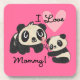 Un oso de panda de la mamá y del bebé diseña con un fondo y un texto rosado y corazones y un texto que lea a la mamá del amor de I en las camisetas, monos, tazas, tarjetas, pegatinas, bolsos, imanes, y más blancos.