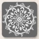 Esta mandala blanca se sienta sobre un fondo gris oscuro. Los colores son neutros y reservados y caben en cualquier lugar. Parte de la colección Payon Mandala.