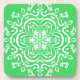 Esta mandala blanca se asienta sobre un fondo verde de primavera brillante. Los colores son enérgicos y luminosos. Parte de la colección Losonieth Mandala.
