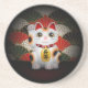 Un gato afortunado japonés, ilustrado por Megan Anderson. El kanji en la moneda representa "longevidad".