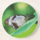 Marrón oscuro y mariposa gris contra un fondo de verde.