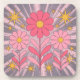 Esta montaña rusa tiene tres estilizadas mareas sobre un fondo rosa y plateado. Cada flor tiene 10 pétalos con estrellas doradas. Las flores parecen bonitos en el fondo rosa y plateado. La imagen tiene una estética psicodélica de los años 70 con líneas de negrita y colores sólidos. El estilo artístico es moderno de mediados del siglo XX. La montaña rusa es una dura montaña de plástico con una espalda de corcho. El conjunto contiene seis tiras.