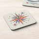 Esta montaña es un diseño geométrico rosa de brújula de estilo Art Nouveau de mediados del siglo XX. El fondo es de color crema. La montaña rusa es una montaña rusa de plástico con soporte de corcho. Hay seis tiras en el set. El diseño tiene una estética moderna vintage de mediados de siglo.