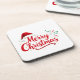 Posavasos Merry Christmas Typography with Santa Hat and Snow