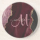 Posavasos Moda Burgundy Gold Agate Script Personalizado Mono