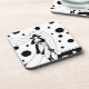 Diseño Art Déco de ilustracion de época con una dama de moda vestida con un gorra y abrigo y con un bolso. La mujer camina por un camino flotante. Los puntos, círculos o burbujas de polka negros flotan alrededor. El fondo está claro para que pueda añadir cualquier color que desee. ¡Haga clic en el botón "personalizar"!