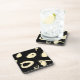 Esta moderna montaña acrílica está diseñada con manchas amarillas blancas y gestos gráficos sobre un fondo negro claro.