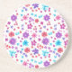 Una montaña rusa redonda de bonito, de piedra arenisca, con un patrón de flores brillantes en violeta, turquesa, rosa y naranja sobre un fondo blanco, de un collage de papel pintado a mano de Judy Adamson. Puede cambiar fácilmente el color de fondo, si lo desea, utilizando el botón Editar.