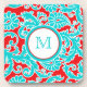 Este moderno y moderno conjunto de damasquinados florales azul turquesa, rojo y blanco monogramado sería un regalo ideal para la joven pareja de moda. ¡personalizar como quieras!