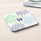 Posavasos Monograma de Flor Azul Verde Marino Acuarela