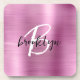 Esta elegante montaña rusa personalizada presenta un monograma y un nombre en un moderno guión en blanco y negro sobre un fondo metalizado rosado.