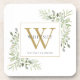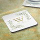 Elegante posavasos de monograma de nombre con hojas de vegetación en acuarela con monograma dorado inicial. Diseñado por Thisisnotme