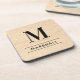 Este sencillo y elegante conjunto de estufas de bebidas monogramadas personalizado presenta un texto clásico en forma de monograma negro que puede ser personalizado con un apellido inicial y apellido. Un hermoso regalo de mantenimiento para una pareja recién casada, familia o nuevos propietarios. Un ligero fondo natural de imitación de grano de madera le da un toque rústico de textura al diseño.