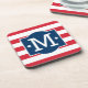 Posavasos Monograma inicial del Personalizado azul rojo patr