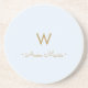 Posavasos Monograma moderno con guión dorado azul turbio y c