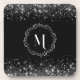 Agrega un toque de brillo con este elegante posavasos de bebida con monograma negro y brillo plateado, perfecto para bodas, fiestas y regalos personalizados.