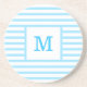 Posavasos Monograma Personalizado de franjas azules y blanca