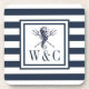 Posavasos Monograma Seahorse Navy Azul a Rayas