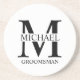 Clásicos regalos personalizados de Groomsmen con monograma, nombre y título personalizados de groomsman en negro clásico estilo de letra serif en fondo blanco. También perfecto para el mejor hombre, padre de la novia y más.