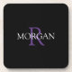 Posavasos Monograma y nombre DIY, texto púrpura y blanco, ne