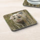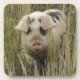 Esta impresionante montaña rusa de corcho muestra una hermosa fotografía de un lindo cochinillo rosado que emerge de una hierba alta.