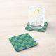 Un conjunto de elegantes posavasos con respaldo de corcho o Matas de mesa, con un patrón de mosaico de patrones geométricos en la tendencia de verde esmeralda, "brotes de licitación" verde y azul monegasco.