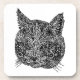 Cabeza ornamental en blanco y negro de un gato, inspirada en un animal de la vida real y dibujada originalmente con lápiz sobre papel.