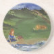 Pintura de mujer joven disfrutando de un día cerca del estanque .