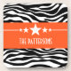 Moderno y moderno Sassy Star Zebra Coaster Set con fondo de moda de cebra en blanco y negro y un atrevido borde naranja adornado con un divertido motivo estrella. Este diseño ondulado puede ser personalizado con el texto personalizado de su elección. Haga clic en "Personalizar" para encontrar más opciones de personalización.
