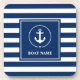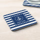 Nautical Bote Name Anchor Rope Naval Blue Stried Coaster